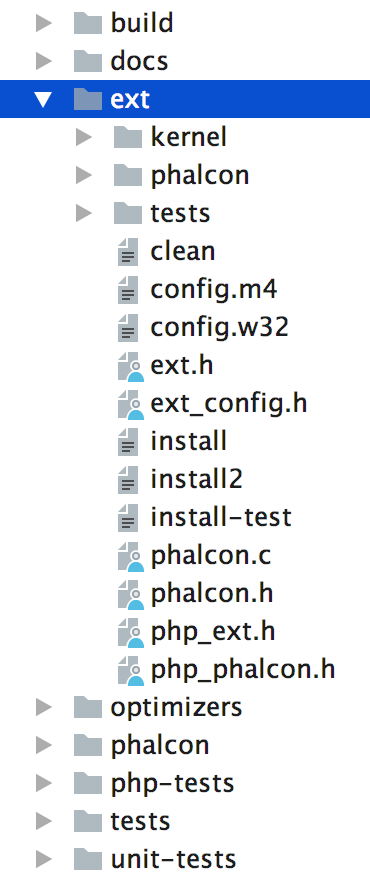 Phalcon目前的源码是用一种中间件语言语言zephir来开发的,zephir源码存在根目录/phalcon下,后缀.zep的文件就是。Phalcon完整的编译机制应该是从zep代码编译成c代码,再从c代码编译成php扩展。/ext/phalcon目录则存放被zephir编译后的c文件。